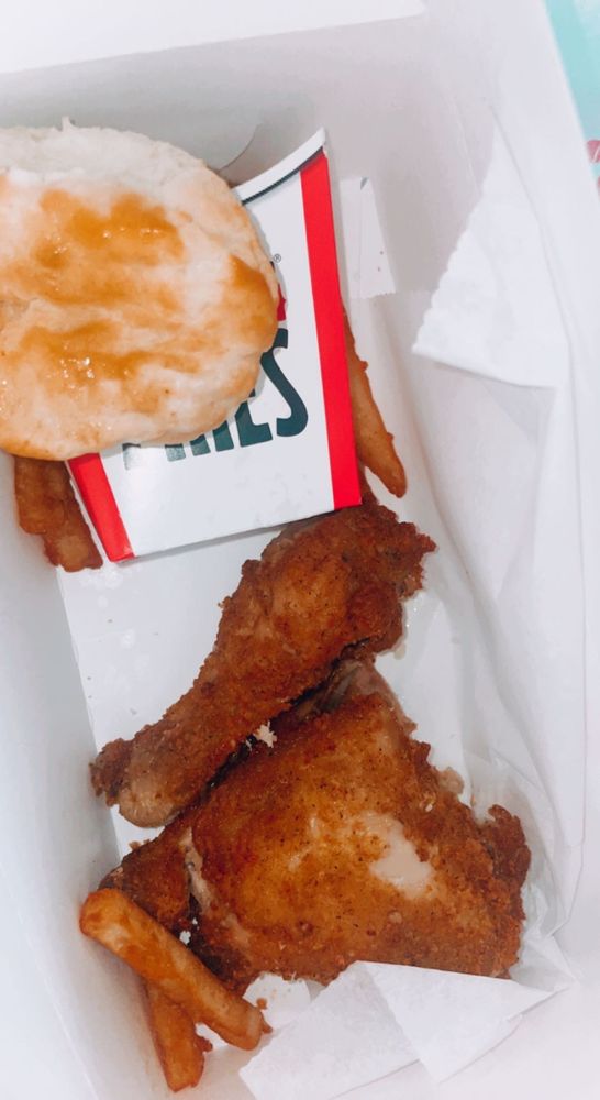 Order online and enjoy 3 pieces of our world famous fried chicken in the KFC recipe of your choice! Choose between our Variety Box Meal (2 breasts and 1 wing) or our all-dark meat Drum & Thigh Box Meal (2 thighs and 1 drum). This box combo includes your choice of 2 sides, a buttery biscuit and medium drink. (700-2340 cal.)